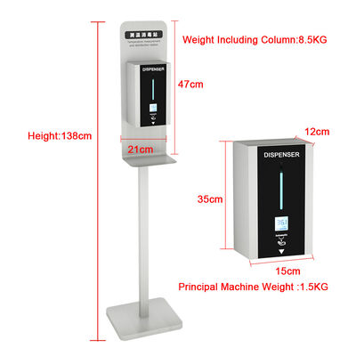 Questo erogatore è di misurare la temperatura basata sulla tecnologia infrarossa ed ha indicazione di voce a se la temperatura provata è normale oppure no. La gente deve appena mettere le loro mani sotto l'entrata (area) del sensore, l'erogatore sfregamento della mano di uscita automaticamente. Questo chiosco combina insieme la misura e la disinfezione della temperatura. lt è di facile impiego. Può essere ampiamente usato in scuole, in hotel, nelle abitudini, in banche, nella famiglia e nell'altra area pubblica.